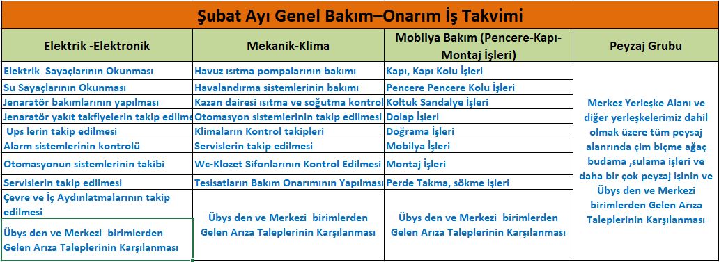 2026 Yılı Yapı İşleri ve Teknik Daire Başkanlığı İş Takvimi