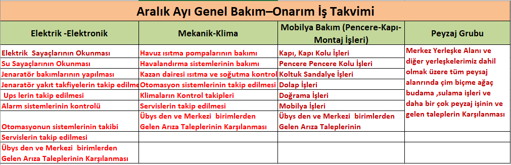 2025 Yılı Yapı İşleri ve Teknik Daire Başkanlığı İş Takvimi